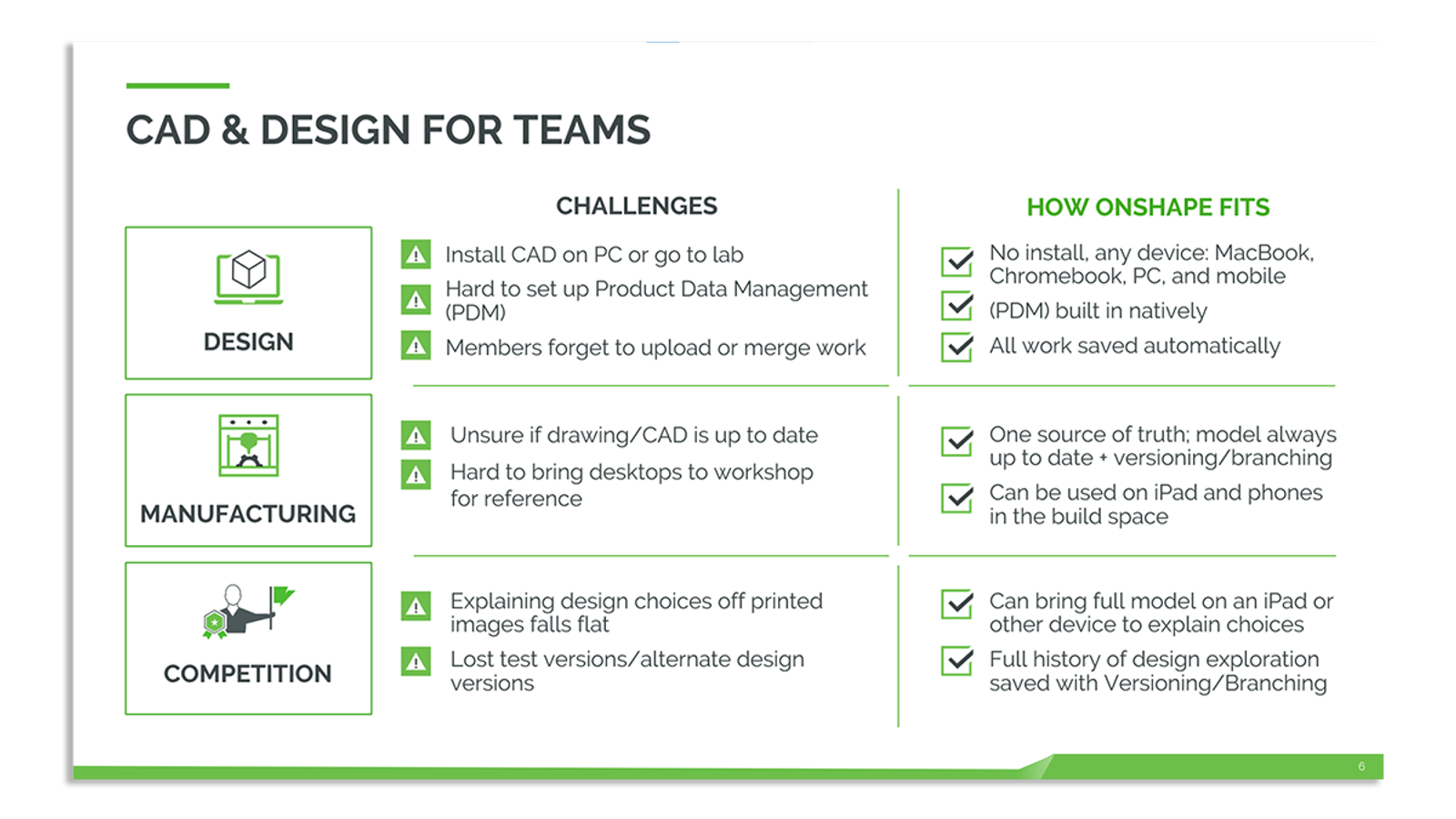 Over the past year, the education team at PTC has put together new enablement material, worked with teams and STEM competition organizations directly, and added to our education offerings to help teams get right into CAD instead of dealing with the headaches of traditional installed CAD tools.