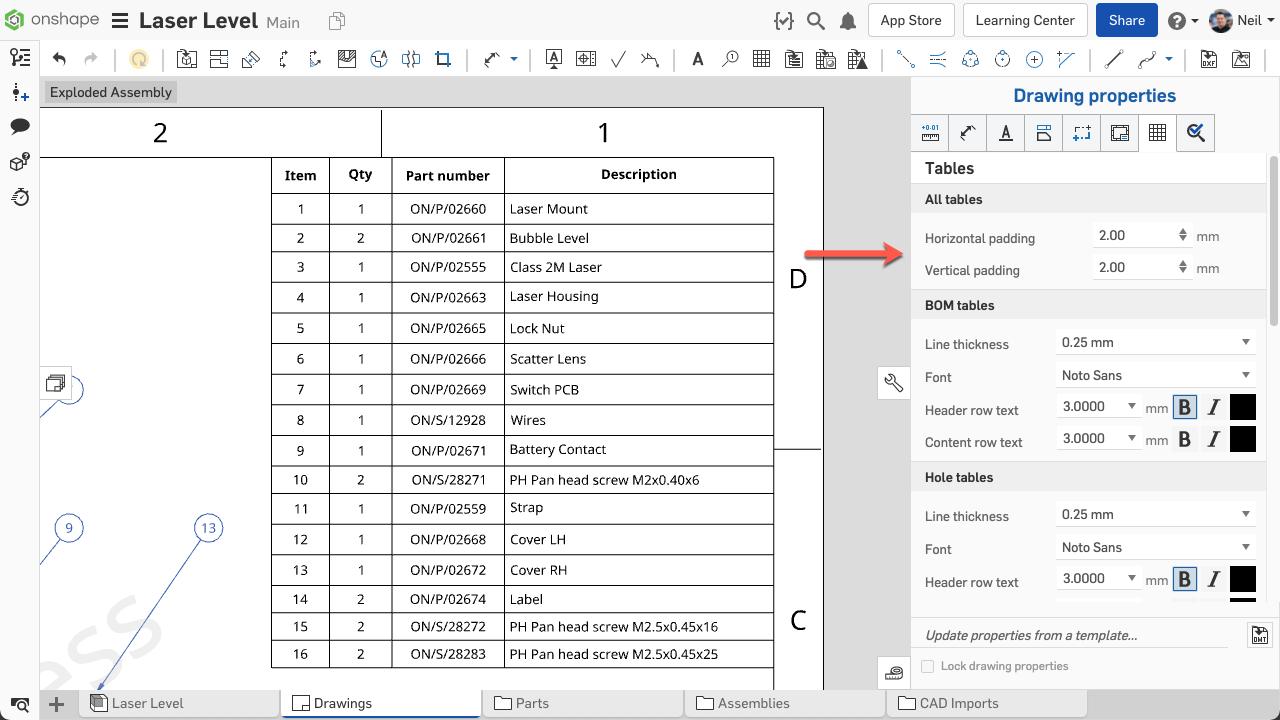 A new Drawing property for tables enables you to control padding around text in a cell. This is a global property for all tables and all cells in a Drawing to specify the minimum horizontal and vertical spacing around text in a cell to maintain legibility or to increase the density of information displayed.