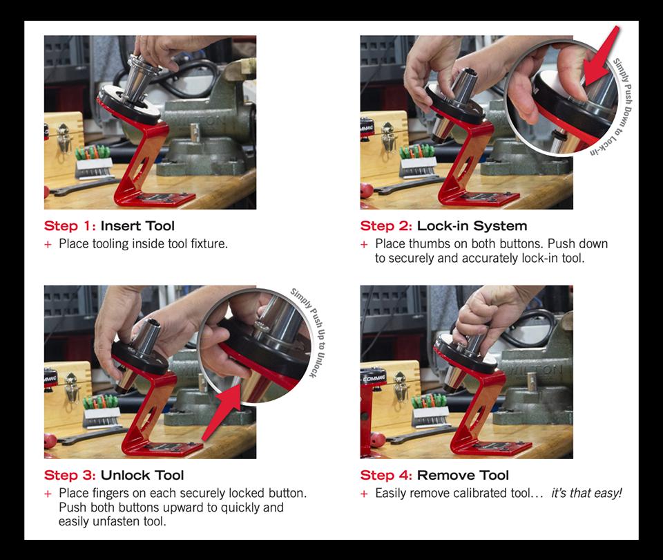 To help reduce setup time for their customers, Command Tooling developed its benchtop Gemini tool fixture – a kind of toolholder for toolholders – that allows machine operators to quickly and securely change out cutters.