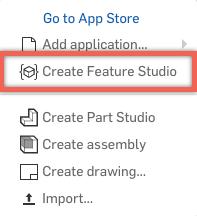 Creating a new custom feature using FeatureScript is easy. There are no software development kits to download, and no IDEs to install. To get started, simply click “Create Feature Studio” in the Create tab menu.