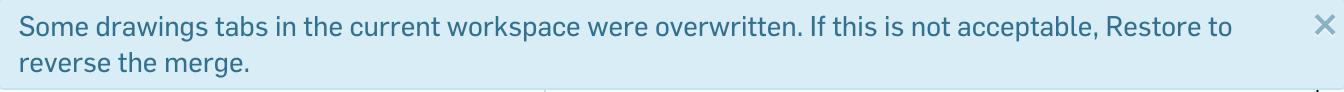 All other types of element tabs such as drawings and non-native formats are completely replaced in a merge (if they were changed in the Source). If a Drawing tab is replaced, Onshape will warn you: