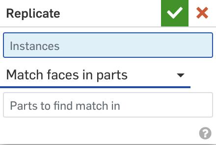 “Match faces in parts” will match any faces that match the mate within the selected part or parts. You can execute the replication on any number of parts simultaneously.
