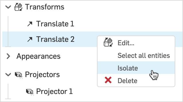 All entities added to a Transform or Projector can now be isolated on screen with a simple right-click.