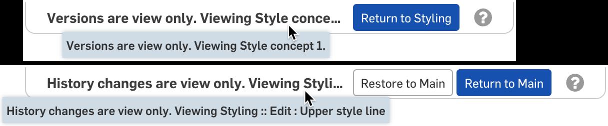 When a version or a history entry (the incremental changes between versions) is selected for viewing, a newly styled banner is now shown to make it clearer which actions are available.