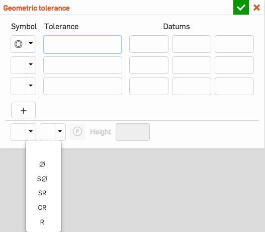 Geometric tolerance improvements include the ability to insert more than two control frames, and new tolerance icons for spherical diameter, radius, controlled radius, and spherical radius.