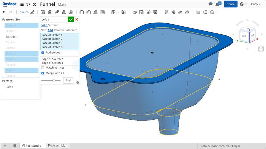 With this release, Onshape has added a feature that is often requested by users trying to create complex shapes: Lofts!