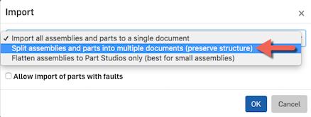 You will find a new option when importing assemblies to "Split Assemblies and parts into multiple documents." This will create Documents for each sub-assembly and part and organize them into a folder named after the top level. To maintain ideal performance, there will be a limit to the number of parts that you can import with this option.