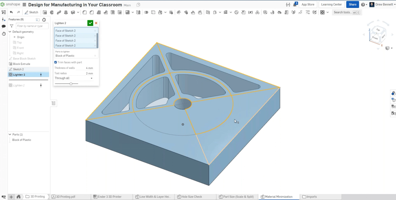 In the webinar Design for Manufacturing in Your Classroom, Dr. Peter Zink, PTC/Onshape Director of Higher Education Initiatives, and Drew Bennett, PTC/Onshape Education Technical Services Engineer, shared tips on how to teach design manufacturing concepts using Onshape.