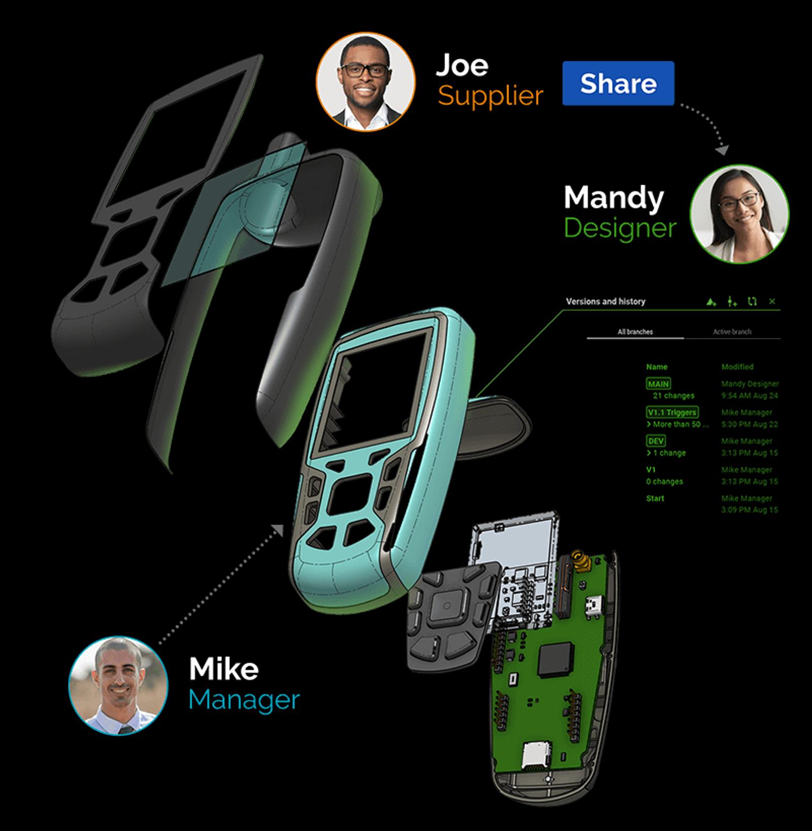 Onshape verbindet alle am Entwicklungsprozess Beteiligten und sorgt dafür, dass Ideen schneller umgesetzt werden. Dank der Zusammenarbeit und Kommunikation in Echtzeit können Teams schnellere und fundiertere Entscheidungen treffen, damit Kundenwünsche an erster Stelle stehen, Fertigungsfehler reduziert und Lieferantenbeziehungen verbessert werden.