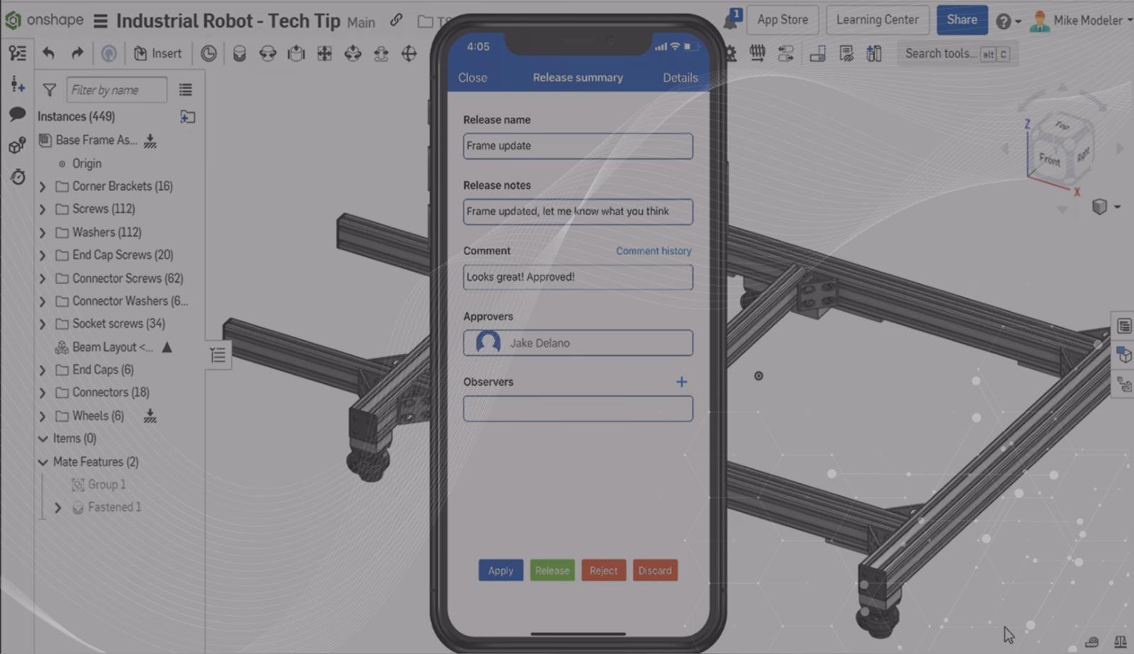 Not only can you use Onshape’s mobile application for editing and viewing CAD models, but you can also use it as part of your release process! When a release is sent out for approval, you receive a notification on your mobile device that you need to approve a release.