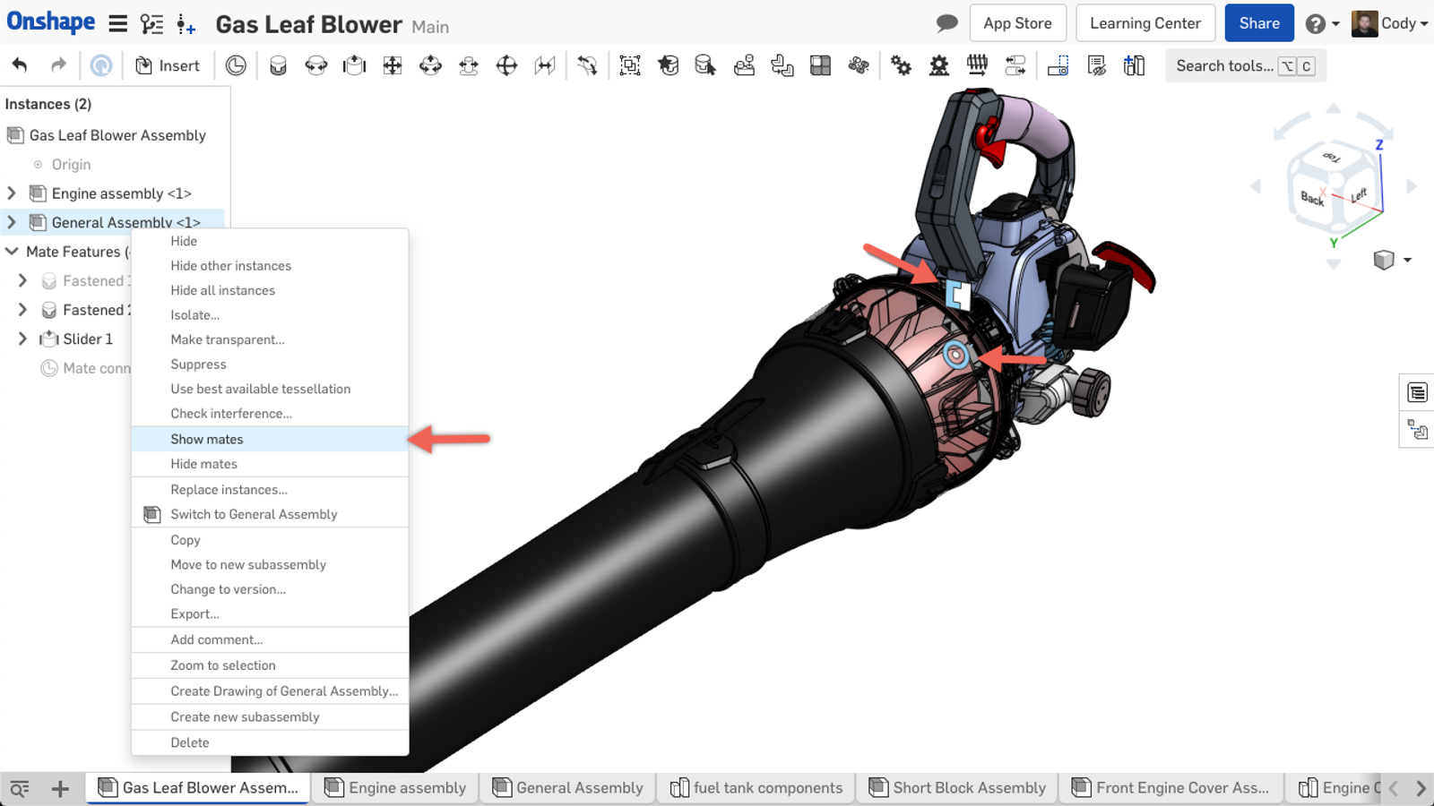 Now, when right-clicking a subassembly and choosing the option to "Show mates," you will only see the mates that constrain the subassembly to the top level. In the past, all the mates within the subassembly would also be shown.