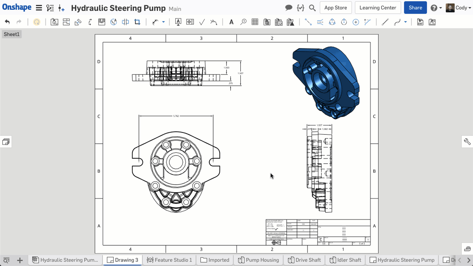 The Sheet Flyout in Onshape Drawings now displays Part Number, Version or Revision, and State of the sheet reference.