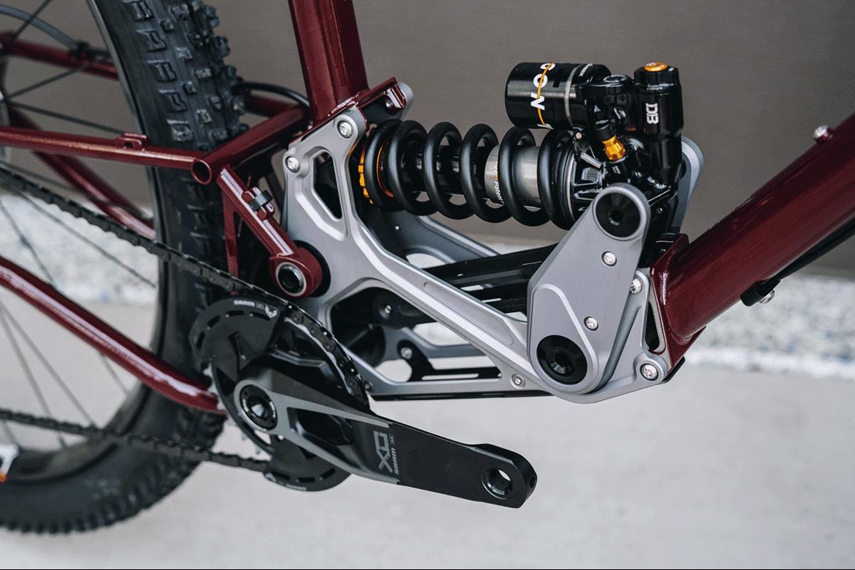 The frame design is decoupled from the suspension to achieve the best of both: a refined frame that carves and rides smoothly, plus a compact suspension system that keeps the center of gravity low and with a ride as smooth as you can get without paving the trail.
