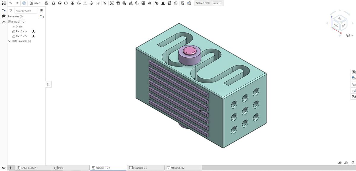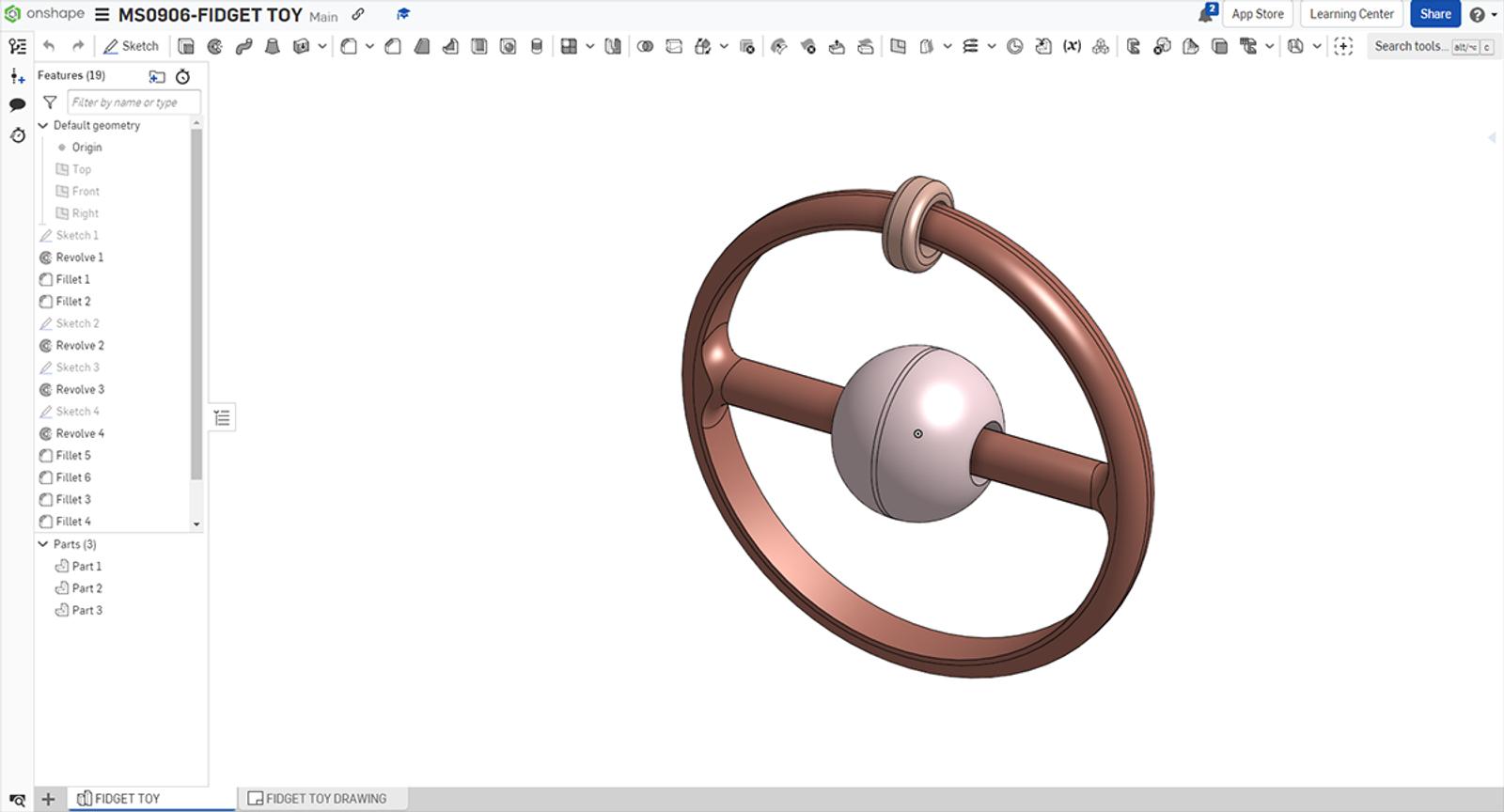 A student-designed fidget toy in Onshape.