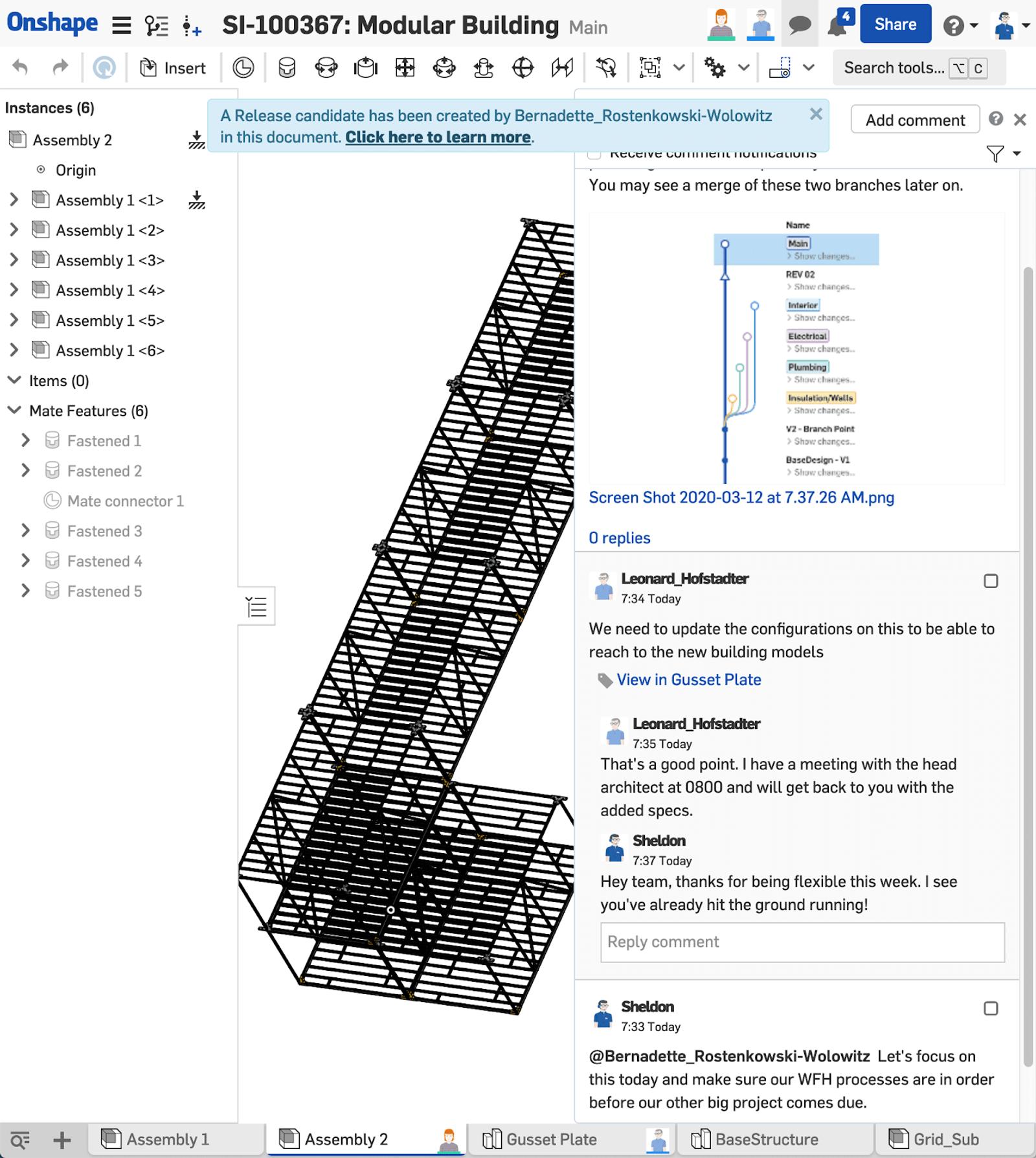 Multiple team members can simultaneously edit and view the same CAD model, enabling seamless collaboration and real-time updates. Onshape’s Follow Mode and Comments features allow you and your team to communicate effectively while walking through a design.