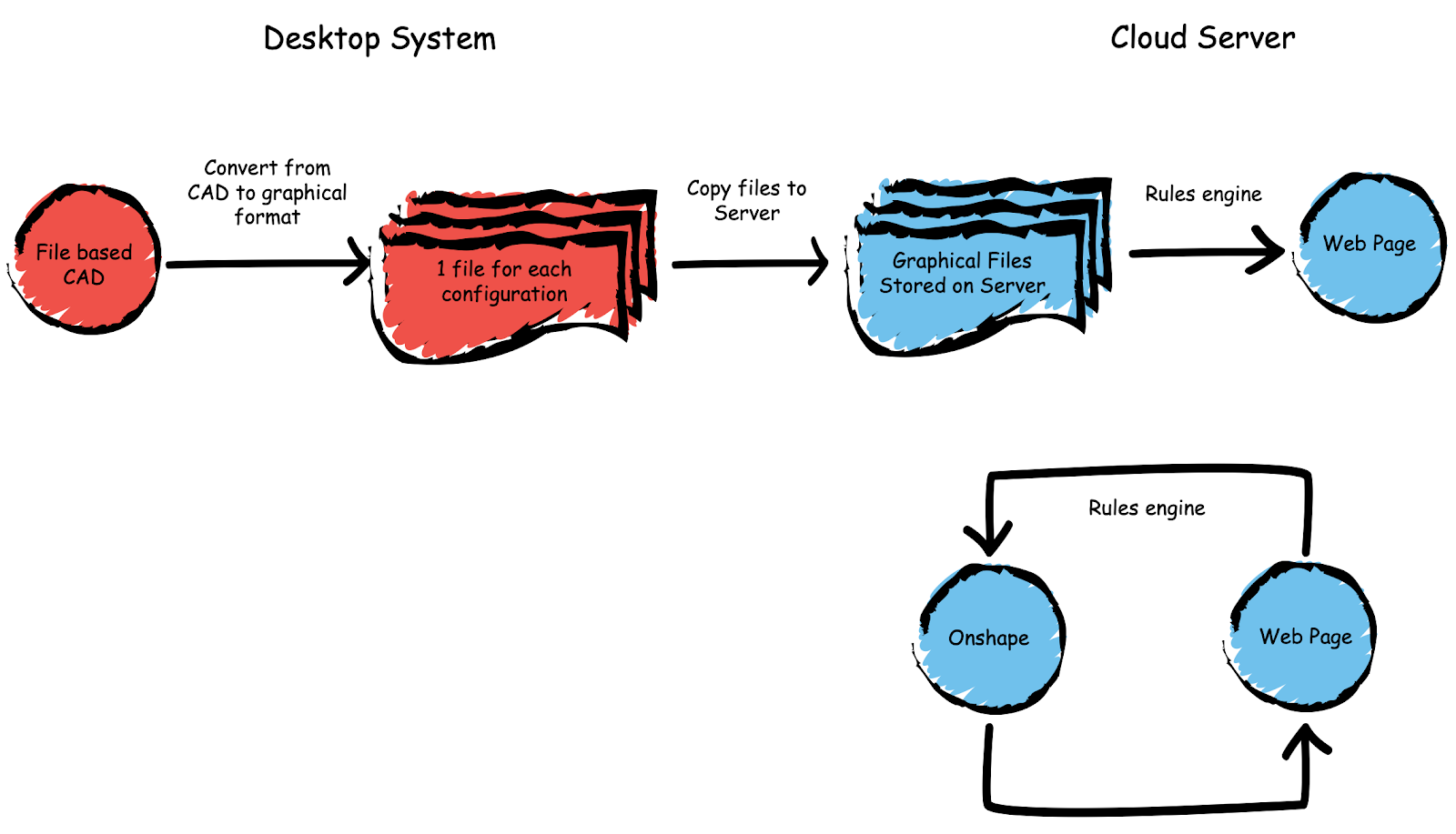 In the past, if a company wanted to build an online configurator, the data would need to be extracted into a file format. Typically, this would require a discrete number of variations to be generated and stored as individual files. The data would be disconnected from the source CAD data.