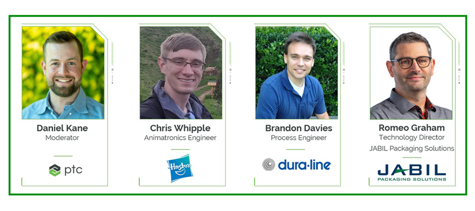 Onshape’s pre-sales technical services manager Dan Kane was joined by Duraline Process Engineer Brandon Davies, Jabil Director of Technology Romeo Graham, and Hasbro Animatronics Engineer Chris Whipple in a panel discussion on how their companies went from discovering Onshape to where they are in production today – and every challenge and win in between.