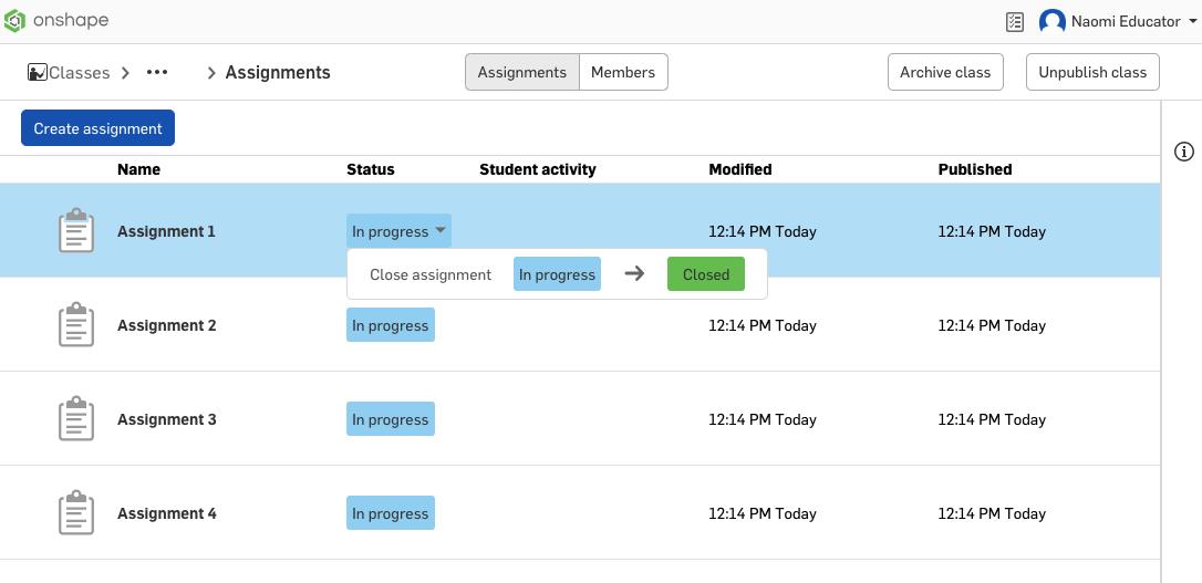 With Onshape’s Classes & Assignments, you can transform your classroom management and focus more on what truly matters – teaching and inspiring your students.
