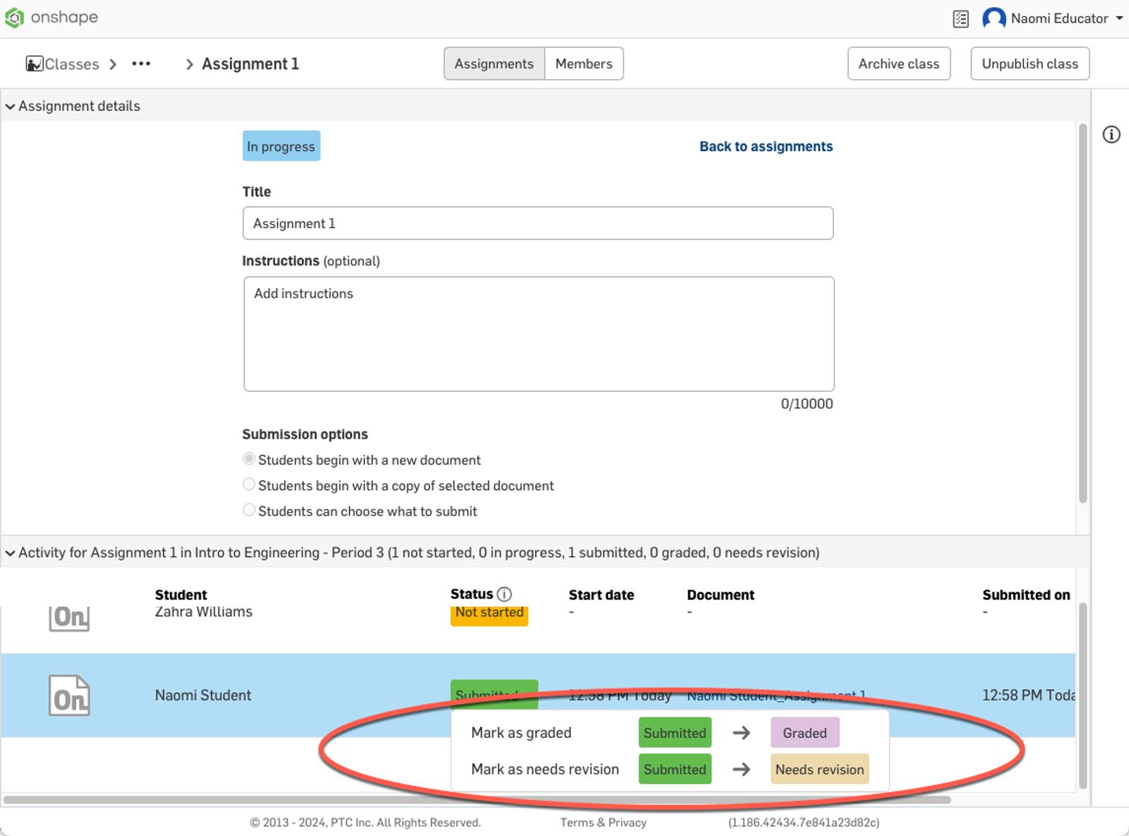 This tool simplifies administrative tasks and enhances your ability to provide meaningful feedback and support to each student. Embrace this innovative solution and experience a more organized, efficient, and impactful teaching journey. Let Onshape help you become the educator you aspire to be every single day.