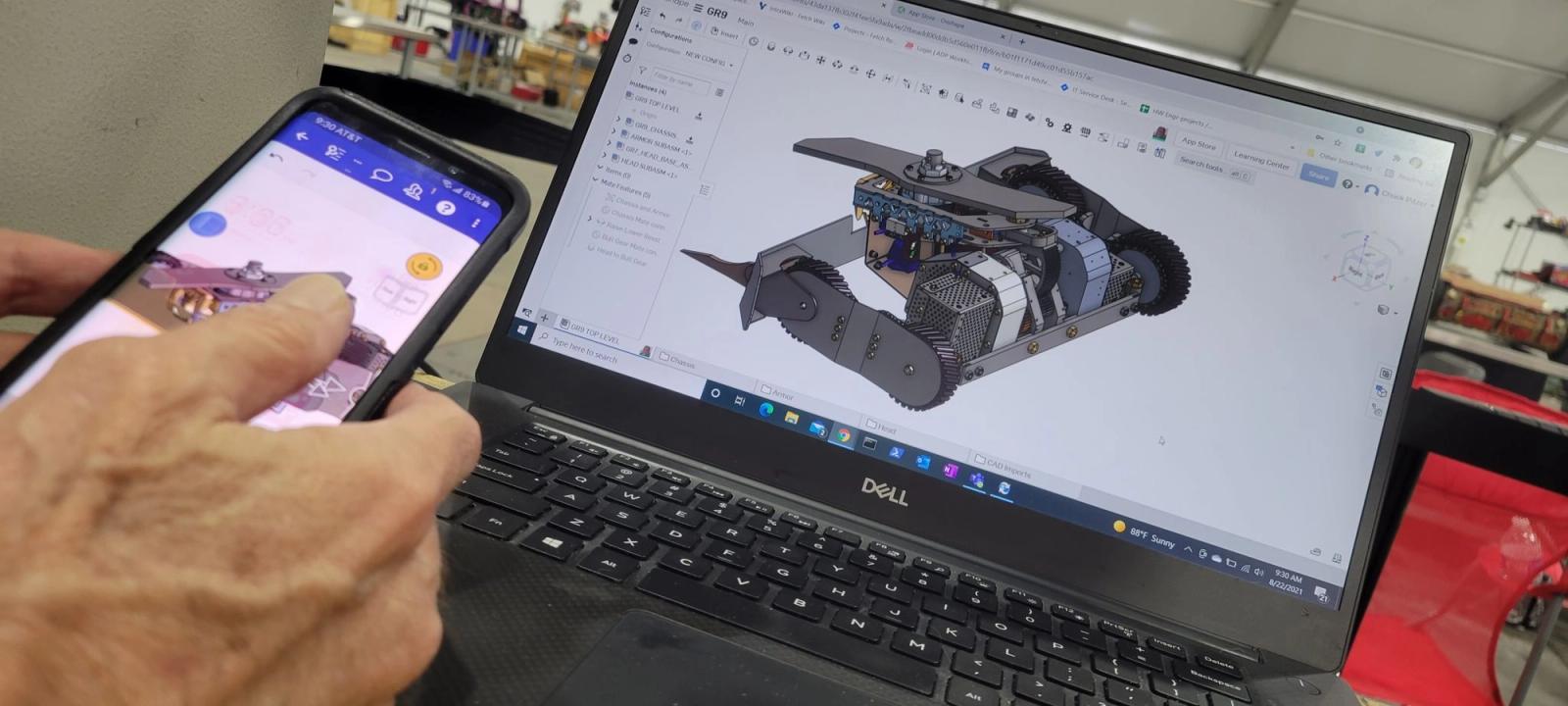 I viewed the Ghost Raptor Onshape Document, complete with every configuration of the robot the team uses in competitions. Chuck tells me the Onshape model will be valuable to the team for verifying weights, part replacements and any adjustments needed after a battle.