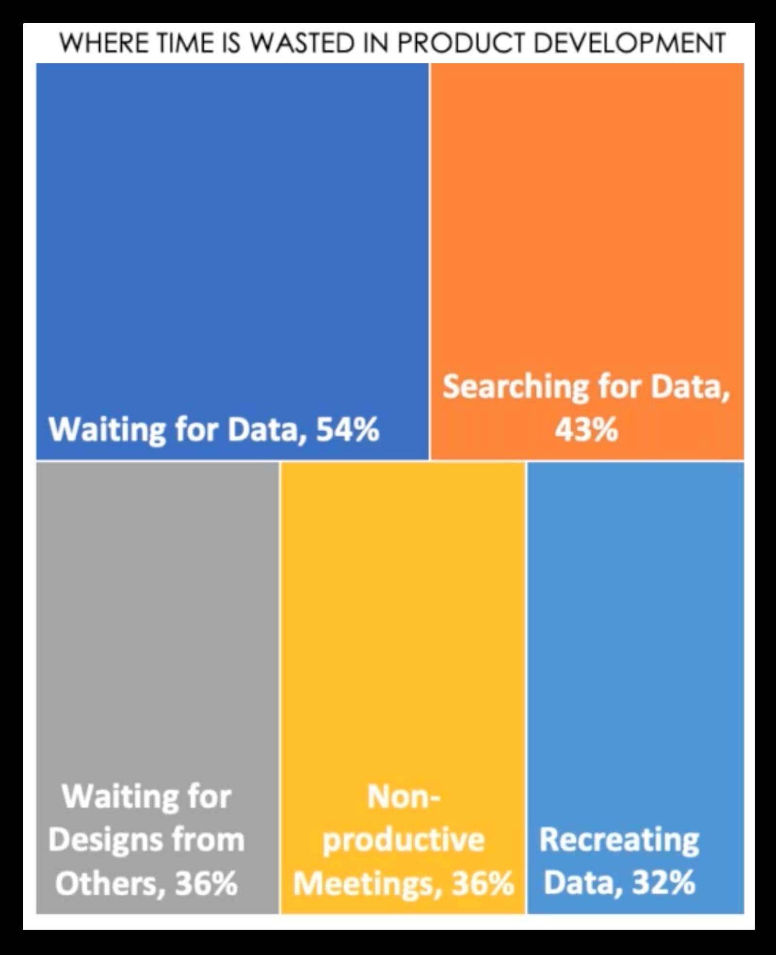 Tech-Clarity research shows that 47% of an engineer's day is spent doing productive value-added work. The other half includes these top time-wasters: waiting for data, searching for data, waiting for designs from others and non-productive meetings.