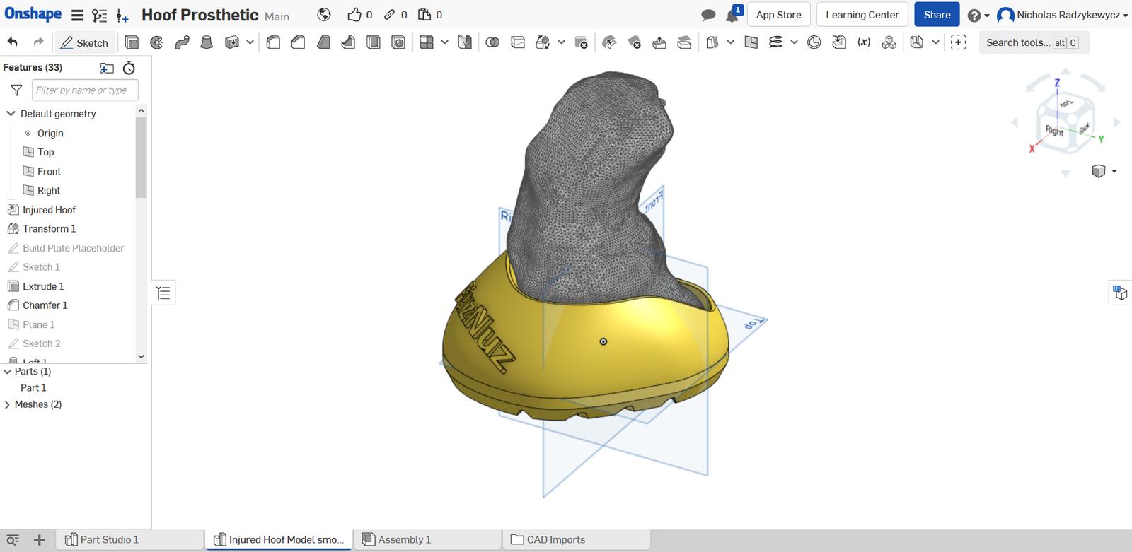 “I see huge potential for more collaboration between engineers and veterinarians. I can send my Onshape 3D models to an expert anywhere in the world and have them take a look at it. It’s so much more powerful than staring at a 2D picture,” Radzykewycz says. “There’s also huge potential with the double-teaming of CAD and photogrammetry software. You no longer need a $5,000 LiDAR scanner. Nearly everyone has a cell phone.”