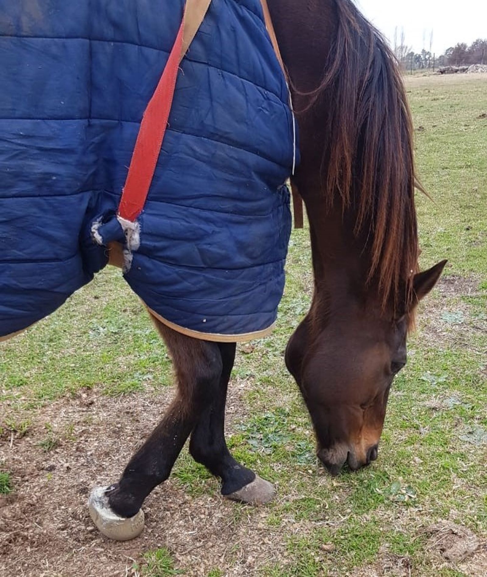 Radzykewycz’s reputation for innovation recently put him in touch with the El Alpino Horse Rehabilitation Center, a treatment facility located just outside Buenos Aires, Argentina. El Alpino was trying to rehab one of its mares, Delanna, whose right front hoof was completely torn off her leg in an accident. The horse’s new hoof cartilage was growing in backwards, creating instability and making it extremely difficult to walk without rolling her ankle.