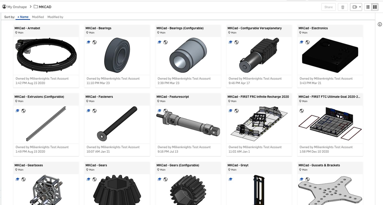 FIRST Robotics Competition: A group of students and mentors in the FRC community worked together to develop a parts library for FRC teams called MKCAD Library. They developed a collection of public documents containing commonly used components. One of our favorite MKCAD features is KrayonCAD – a subgroup of simplified robot components that you can use to quickly experiment with different robot architectures. Click here to learn more about MKCAD.