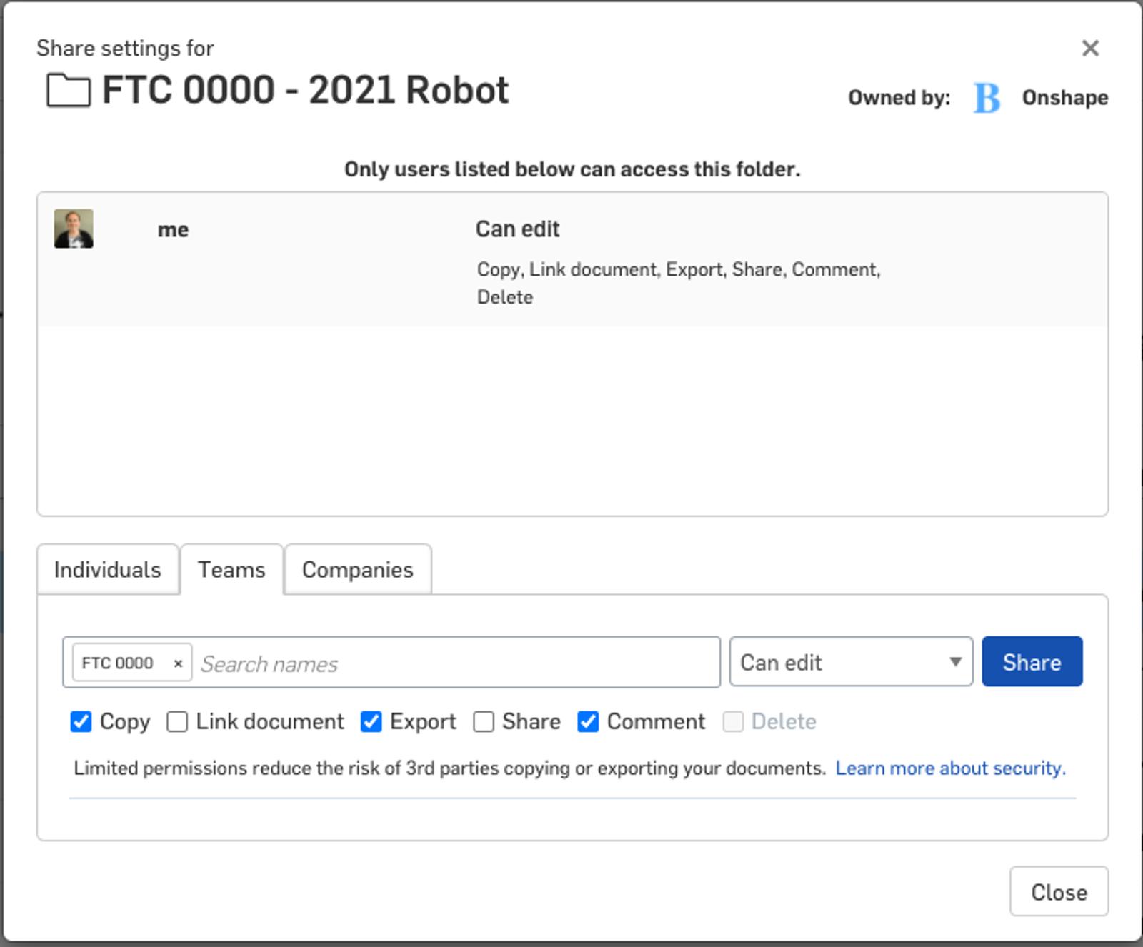 If you or your team have any other questions, check out the Onshape Forums, our Help Documentation, and Learning Center.
