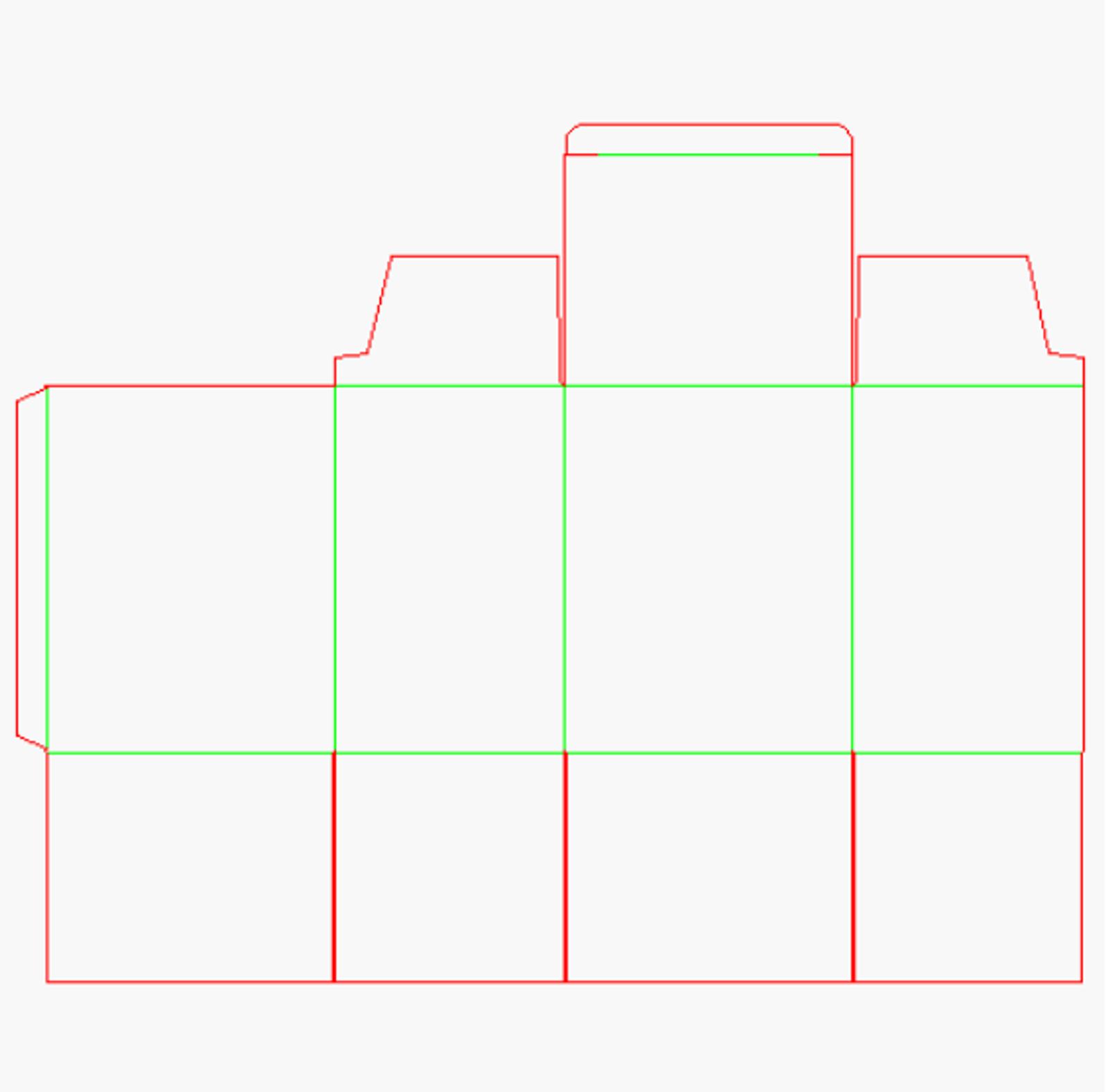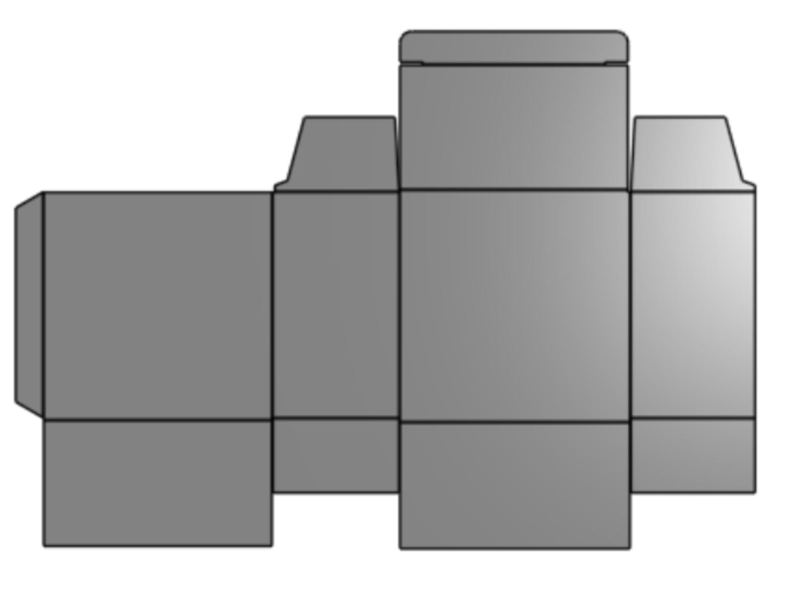 From there, add a 25mm or so edge flange off of the bottom left edge to create flap #4. Your dieline should look something like this. Pretty close to the dieline, but not quite there!