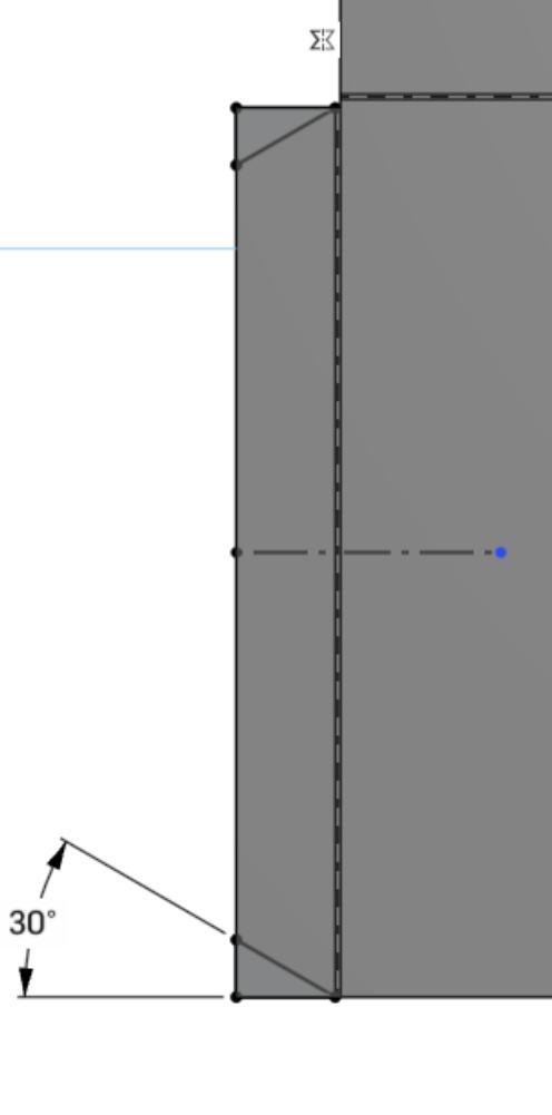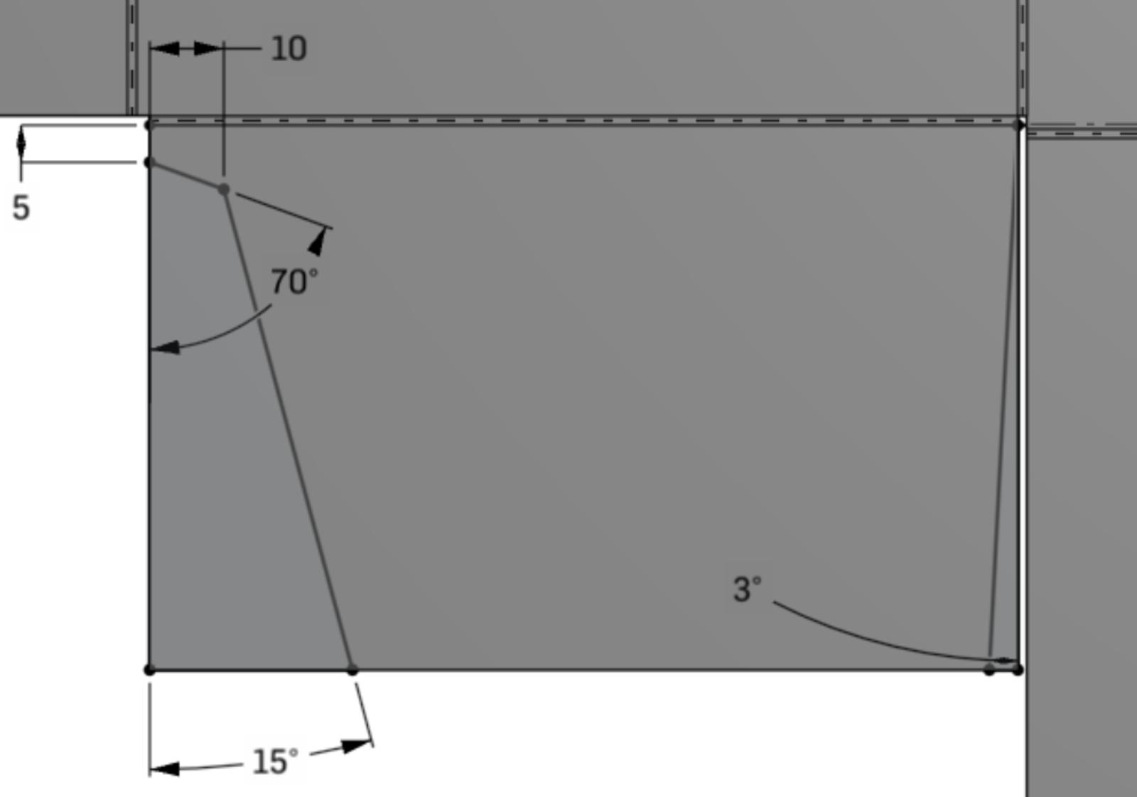13. The last step is to clean up our dieline and add in details for the locking tab. To do this, we will sketch on the flat pattern directly. First, we will add a 30-degree chamfer to the glue tab to prevent an interference with the other flaps and any parts sliding inside the box.