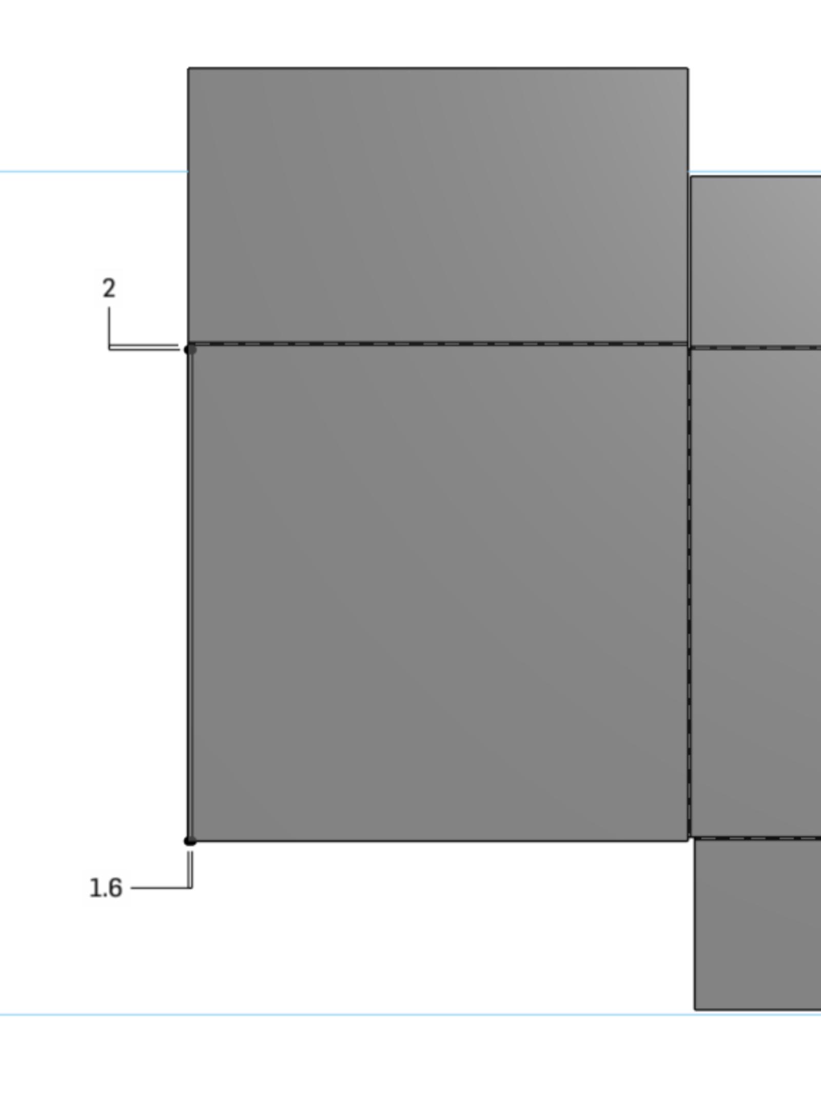 10. Then, add a flange of around 1/3 of the total length. You can adjust this as needed to add more support to the box at the expense of ease of assembly and removal of the product. Now, the flattened pattern is starting to closely resemble the dieline.