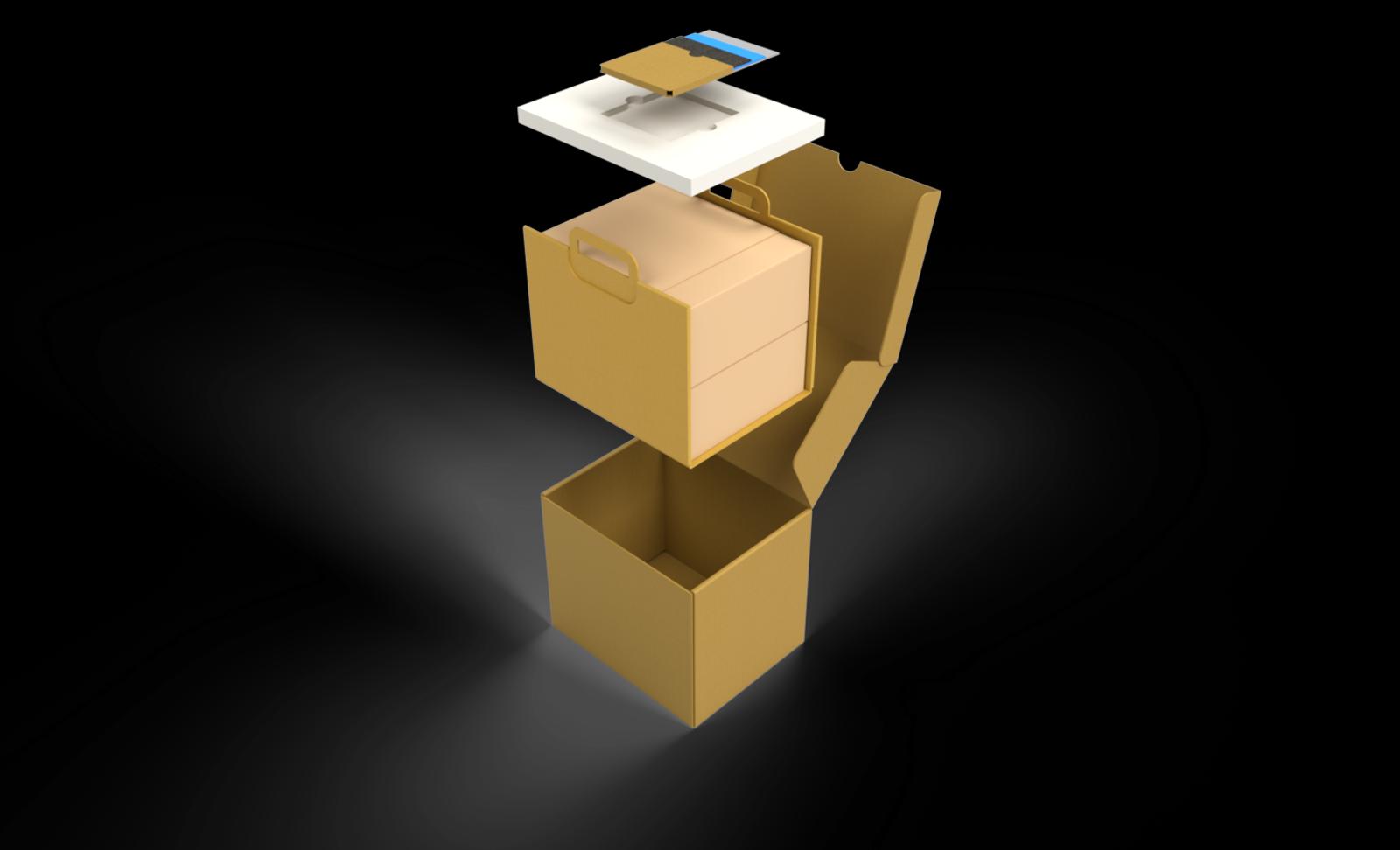 Informal used these tools to create cardboard boxes by adjusting the bend parameters and thickness to closely match the cardboard materials. Working in the context of the packaging Assembly in Onshape, our “sheet metal'' cardboard box was modeled to perfectly fit all the contents. Pull tabs and easy open lids were added to the boxes in the flattened view.