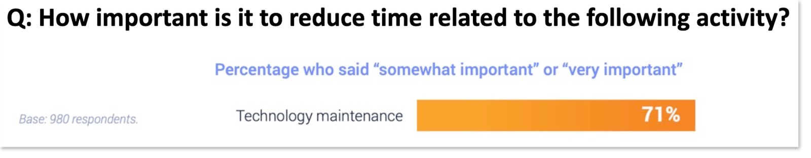 In fact, when it comes to wasting time on maintenance, the survey results in The State of Product Development and Hardware Design 2021 report found that almost 3 in 4 users cite technology maintenance as a critical area where time is wasted.
