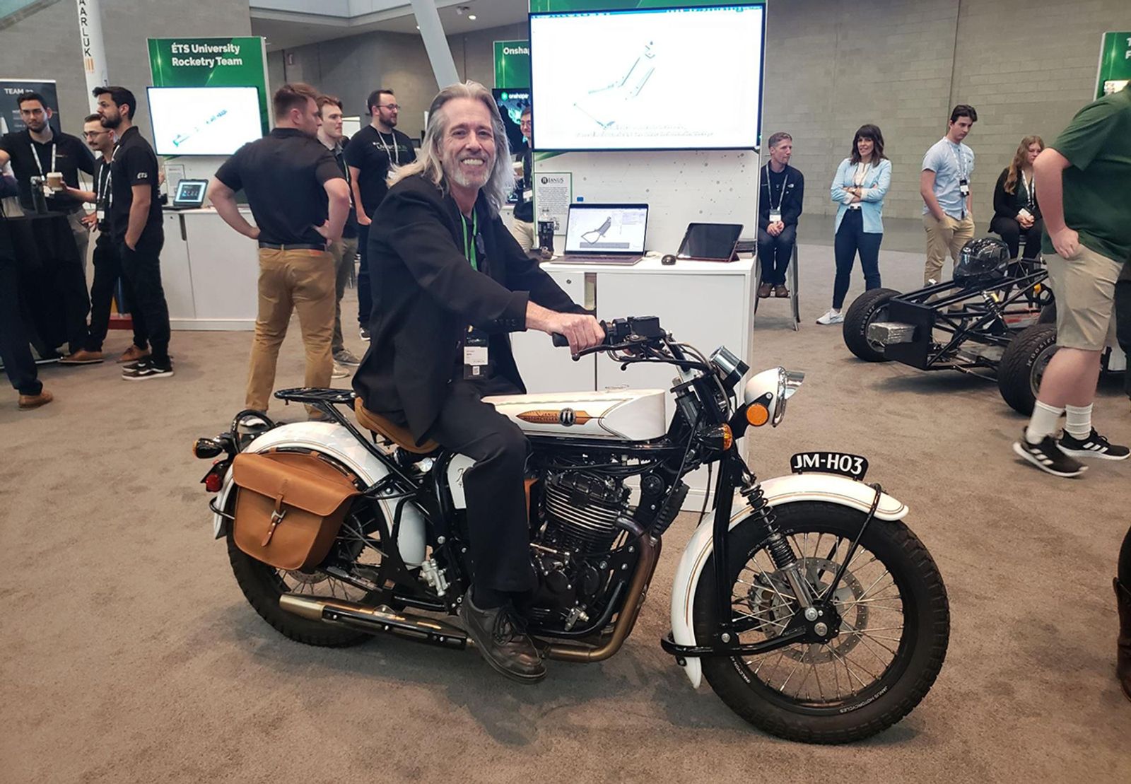 Janus Motorcycles brought their Halcyon 450, which coincidentally, is roughly the same number of people who sat on it and went, “Vrrrooooooooommmm,” imitating motorcycle sounds. Here’s a picture of our very own, Richard “The User Group Guy” Doyle giving it a (pretend) ride.