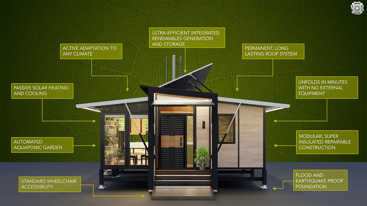 “It's essentially a manufactured sustainable house that produces all your food, water, energy, manages your waste in a self-contained package,” he explained. It’s “transportable, so it can show up anywhere and deploy in a few minutes and basically operate as long as you need it to in that environment."