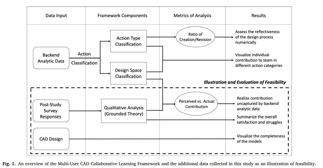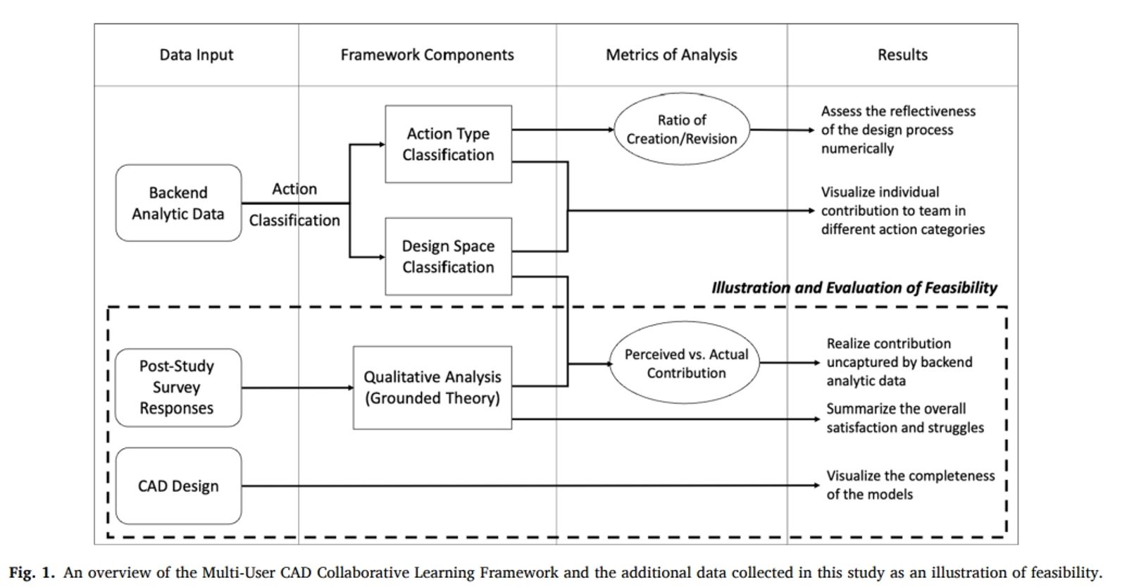 Just last year, Mueller, DaMaren, and colleagues at the Ready Lab, with researchers at Technion - Israel Institute of Technology, published All’s Not Fair in CAD: An Investigation of Equity of Contributions to Collaborative Cloud-based Design Projects. This research paper sought to analyze anonymized user data gathered about clicks and user behavior (called an “audit trail”) exported from Onshape Enterpris ke Analytics and measure collaboration using the established framework dubbed the “Multi-User CAD - Collaborative Learning Framework (MUCAD-CLF)” within a cloud-native CAD environment.