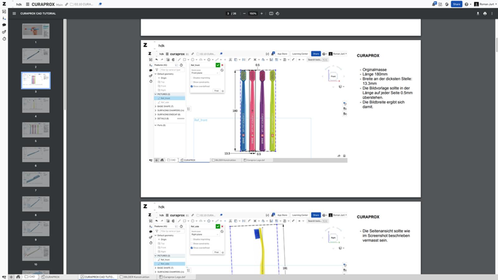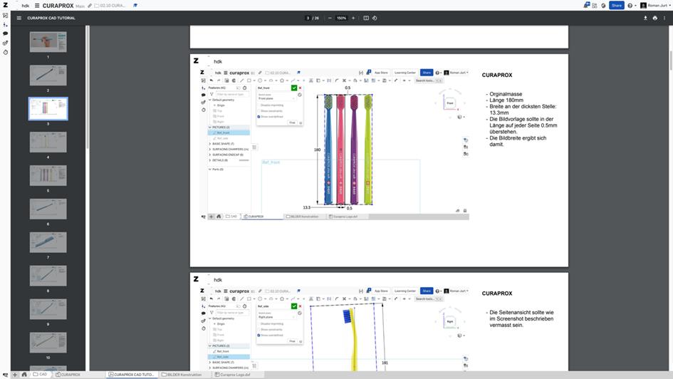 In one example, students are given items from the Museum of Design collection to reverse engineer. For instance, instead of designing a generic toothbrush, students work on a Swiss design icon like the Curaprox toothbrush, as shown below.