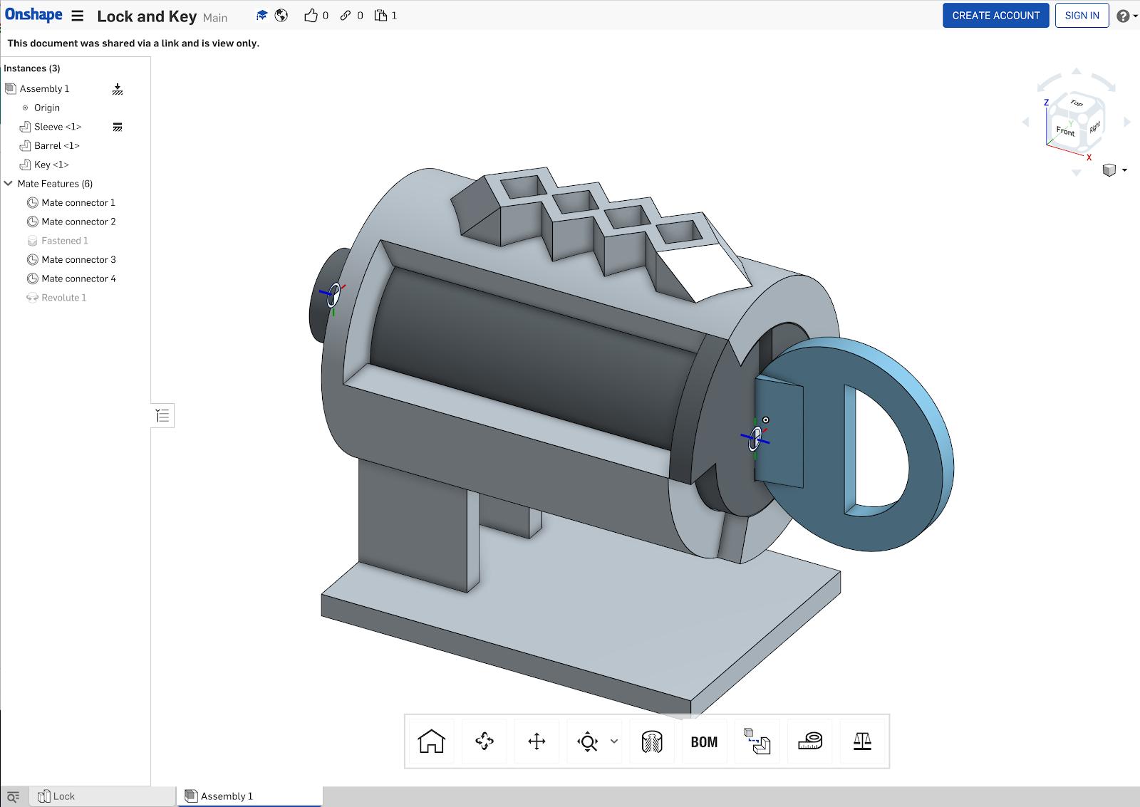 The Onshape 3D model of the lock-and-key system that was later produced on the Providence School's 3D printer.