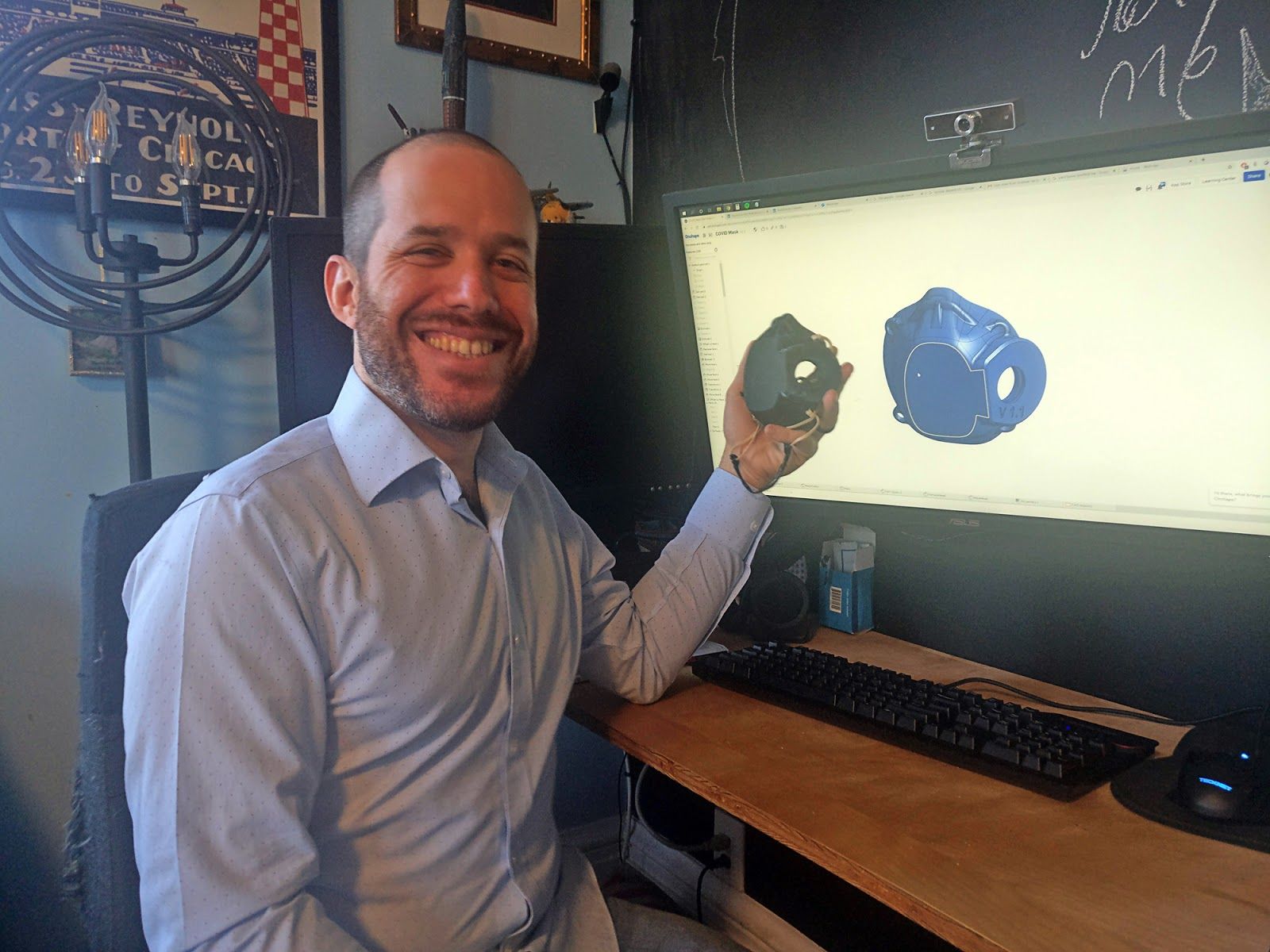 Design engineer Jordan Elevons is designing a 3D-printed respirator meant to be an emergency substitute for N95 masks when they are unavailable. (Courtesy photo)