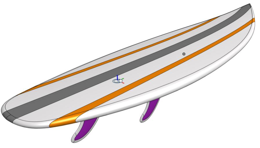 For this competition, Senior Technical Services Engineer Nacho Martos wanted to build up his surfacing skills and designed a surfboard. Actually, he designed several surfboards with different looks and number of fins, placing them in an Onshape Assembly for that “shop” feel.