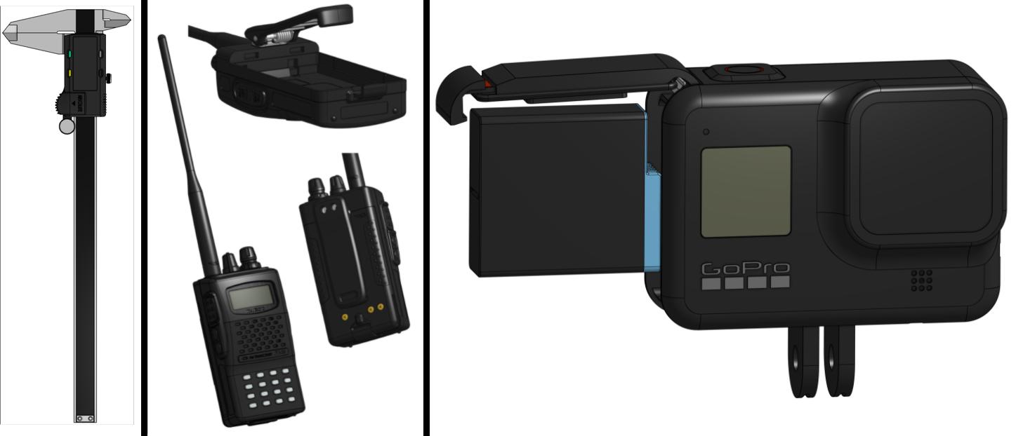 Zachary Sherman, an UX Support intern, worked on three different decked-out part designs. He recreated some Mitutoyo calipers, a Yaesu FT-60R ham radio and a GoPro HERO8 Black. And no details were left out.