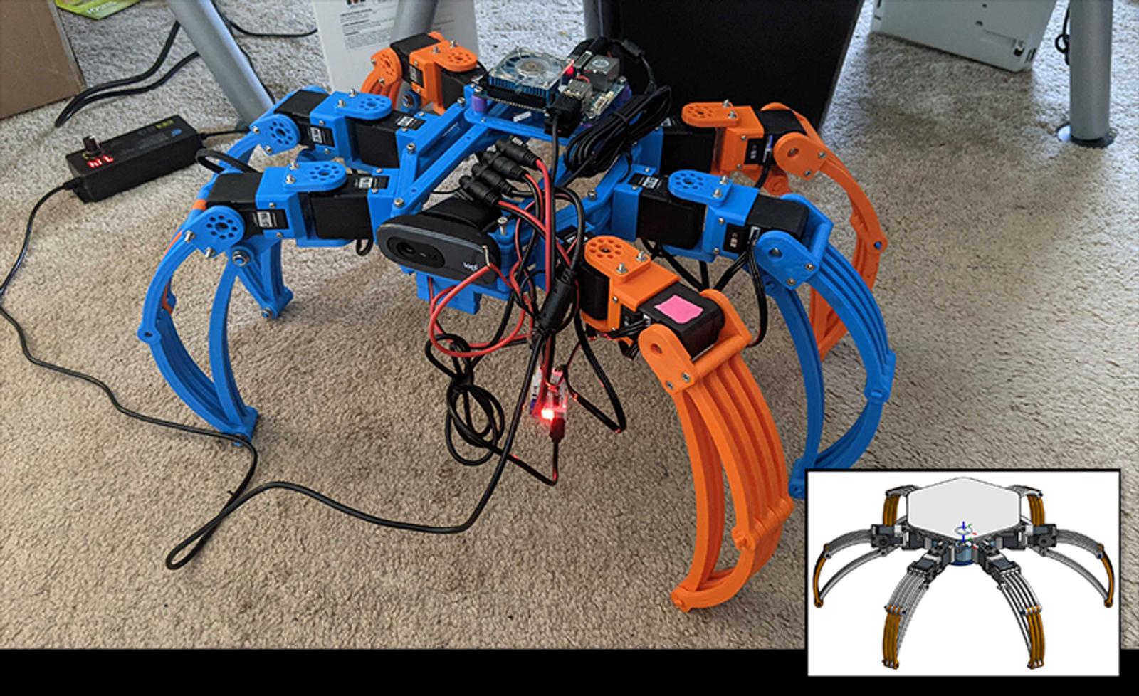 “I designed Harriet the Hexapod originally as a mapping solution,” Rivadeneira said. “I wanted a robot that could navigate a house and send me a floor plan. Staircases proved to be an issue for rolling drones and flying drones were basically too expensive for the features I was after. After actually designing and assembling it, I began extending the functionality.”
