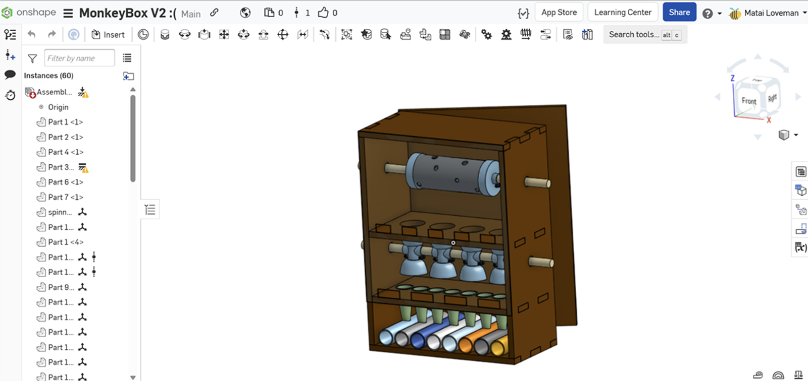 Utilizing Onshape assemblies, students were able to piece together the parts they designed to see the final assembly before printing and building the food puzzle.