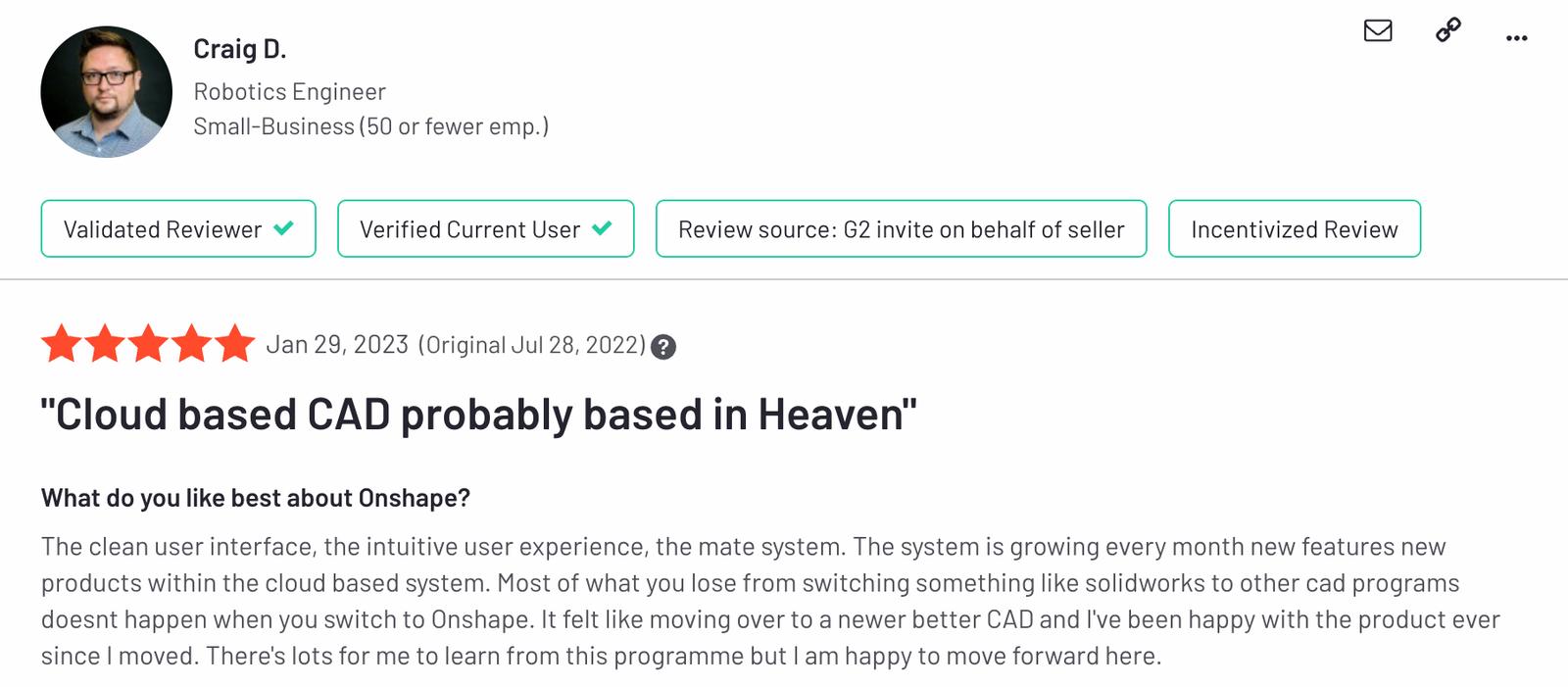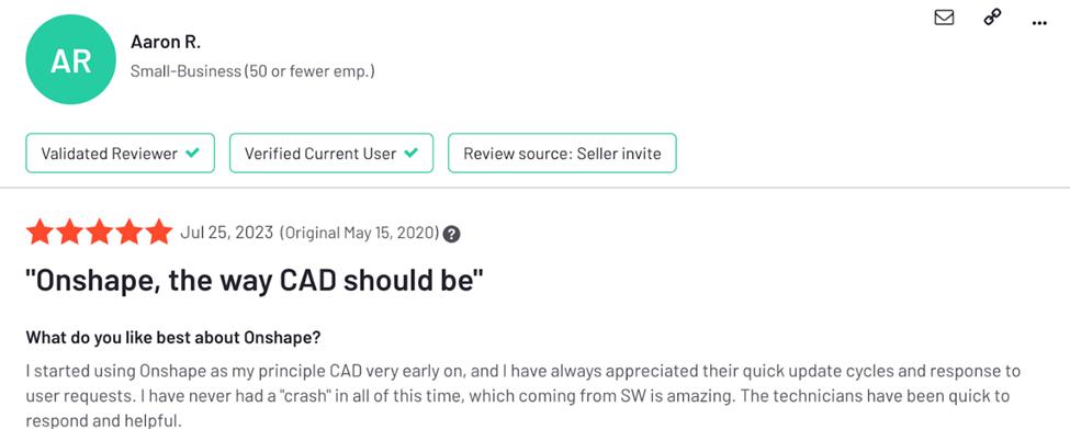 That’s the power of cloud-native CAD – all data is stored instantaneously and redundantly in the cloud. Our customers consistently report that crashes, a common headache with traditional CAD systems, are simply not part of their experience with Onshape. As one user noted, “I have never had a crash in all this time…”