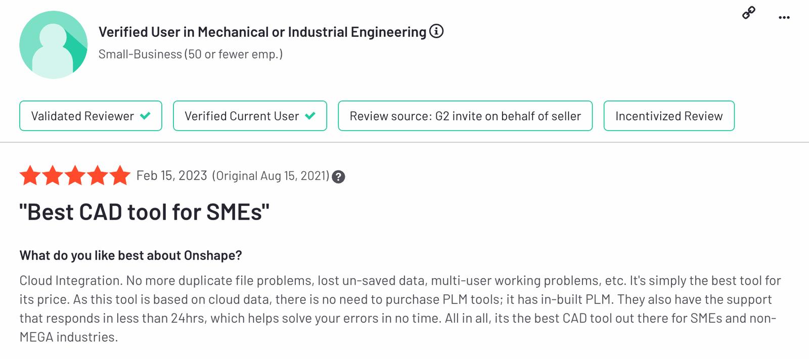 The Onshape-Arena Connection takes it further, bringing CAD, PDM, and PLM together. In this user’s words, “... there is no need to purchase PLM tools; it [Onshape] has in-built PLM.”