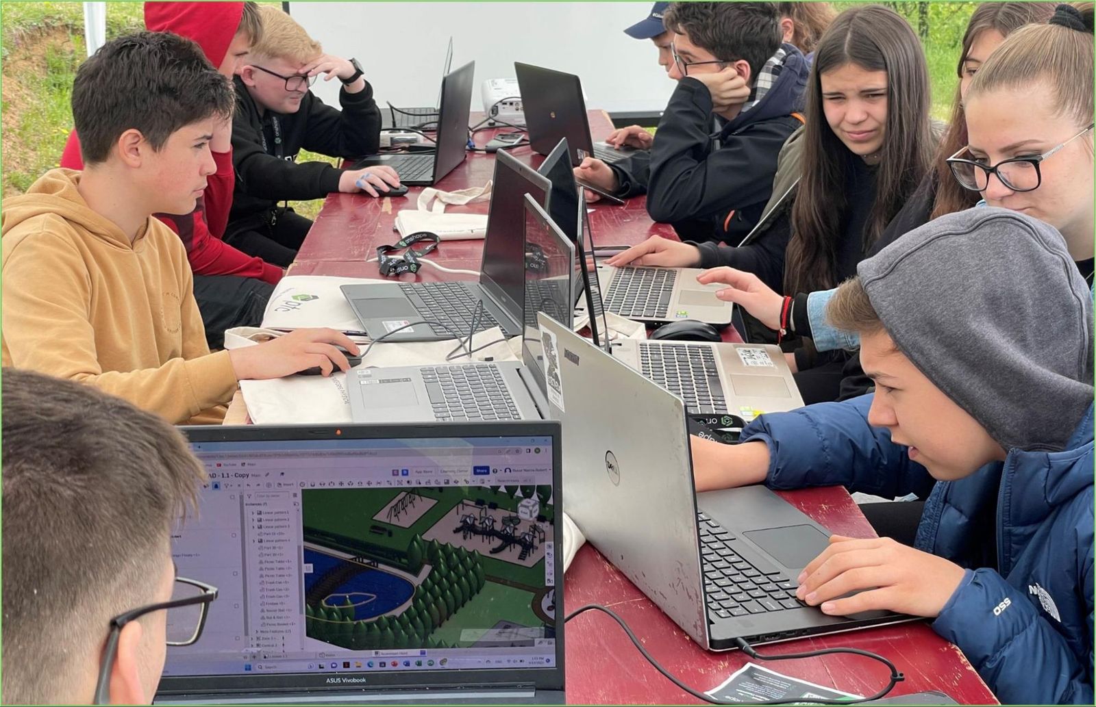 The outdoor CAD workshop – the “one the students were waiting for,” according to one teacher in attendance – was organized into three sections, each designed to allow students to build their skills while exploring Onshape’s unique capabilities.