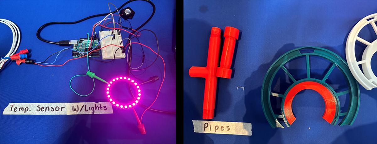 The Smart Shower fixes this problem by using an automated valve in the pipe leading to the shower head that is controlled by a box with a temperature sensor. The valve near the shower head will stay closed, conserving the water, until a desired temperature is reached. The shower head also connects to a temperature sensor that shows the user how hot the water is with an LED light scale.