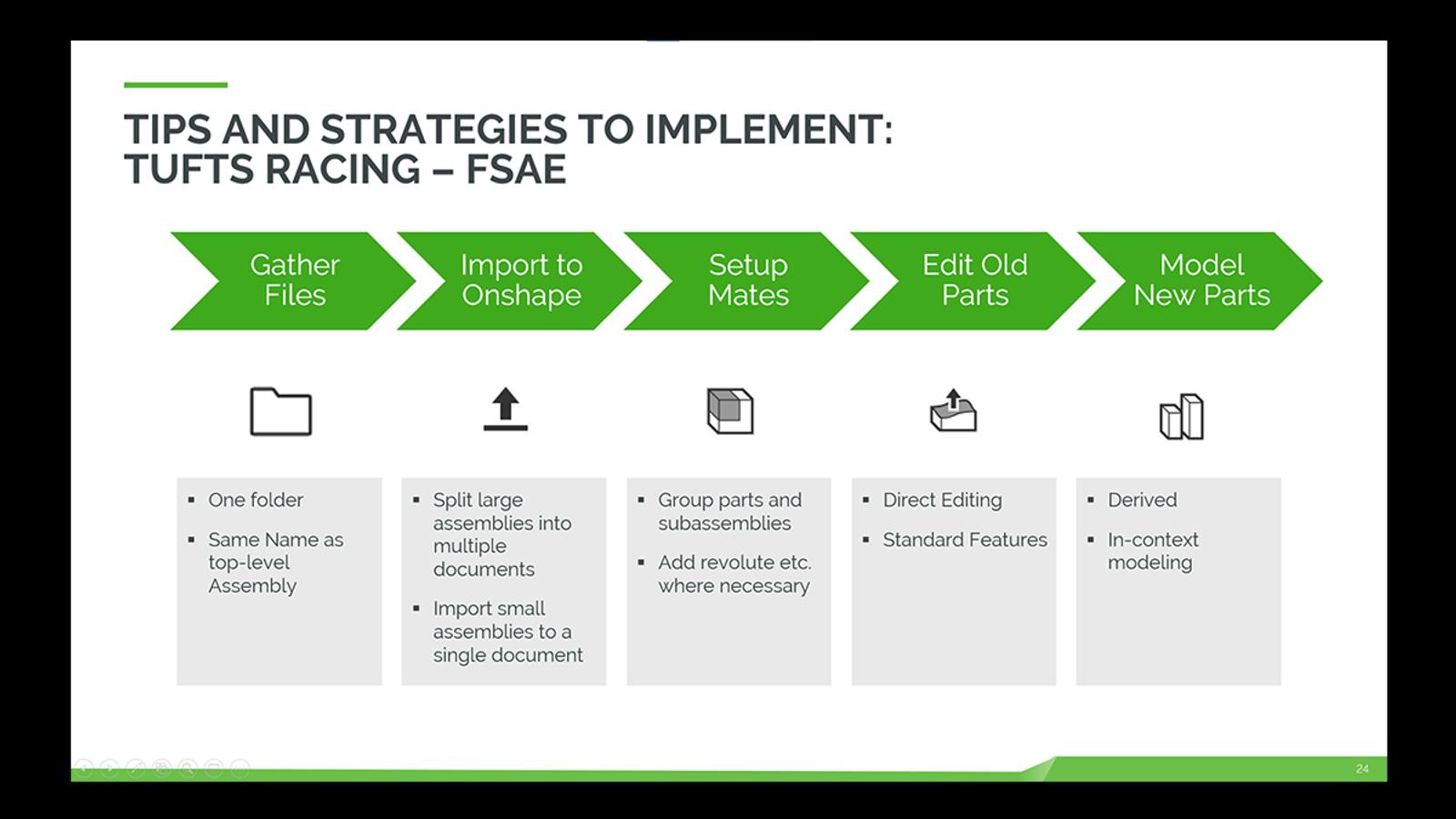 We spend a lot of time talking with teams to help them implement Onshape, so we get to learn from them what’s working best and what strategies they are using to be successful. The Onshape community of users is great and often offers up help and shares what they are doing with other teams. So, let’s talk about two teams and their tips.