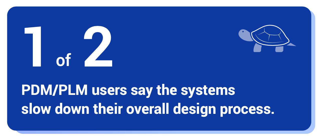 According to The State of Product Development and Hardware Design 2020, an independent industry survey commissioned by Onshape, the engineering world’s frustration with product data management technology is loud and clear. The survey of nearly 1,000 worldwide product development professionals found that more than 50% of file-based PDM/PLM users believe the systems are slowing down their overall design process.